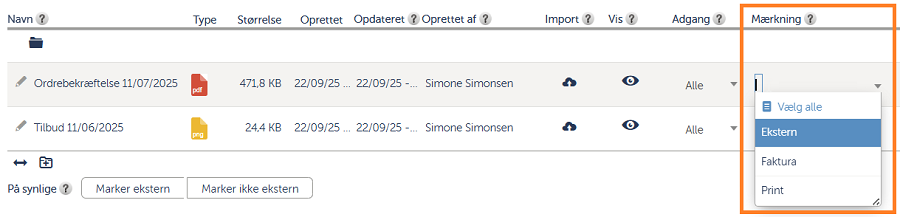 For at dokumenter kan bruges effektivt på tværs af systemet, kan du tildele dem Mærkninger, som styrer, hvordan de indgår i dine workflows: