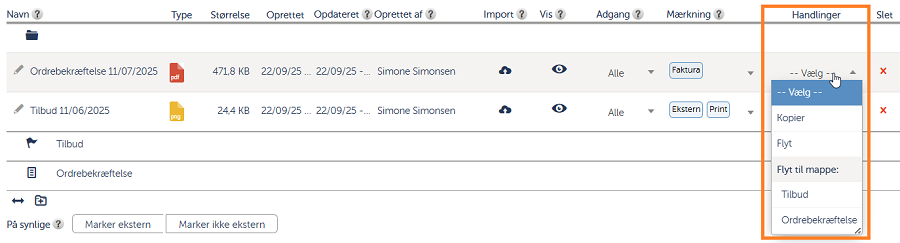 Med Modir slipper du for rodede mapper og manuelle processer. Systemet er bygget til at gøre dokumentstyring enkel, fleksibel og fuldt integreret i dine workflows. Du kan tilføje dokumenter direkte på ordren, og du styrer selv, om dokumenterne skal være synlige eksternt. Det giver dig fuld fleksibilitet til at organisere filer på en måde, der passer til dine processer.
