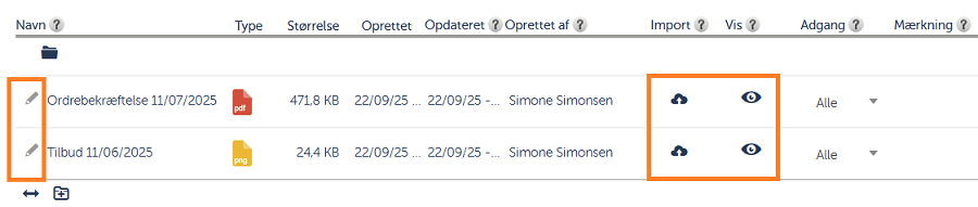 - Tilføj dokumenter med Mærkningen "Underskrift" på brugeren, så de kan bruges på f.eks. formularer til lånebilskontrakter.