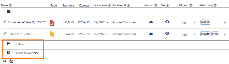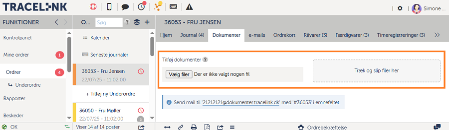 Med Modir slipper du for rodede mapper og manuelle processer. Systemet er bygget til at gøre dokumentstyring enkel, fleksibel og fuldt integreret i dine workflows. Du kan tilføje dokumenter direkte på ordren, og du styrer selv, om dokumenterne skal være synlige eksternt. Det giver dig fuld fleksibilitet til at organisere filer på en måde, der passer til dine processer.